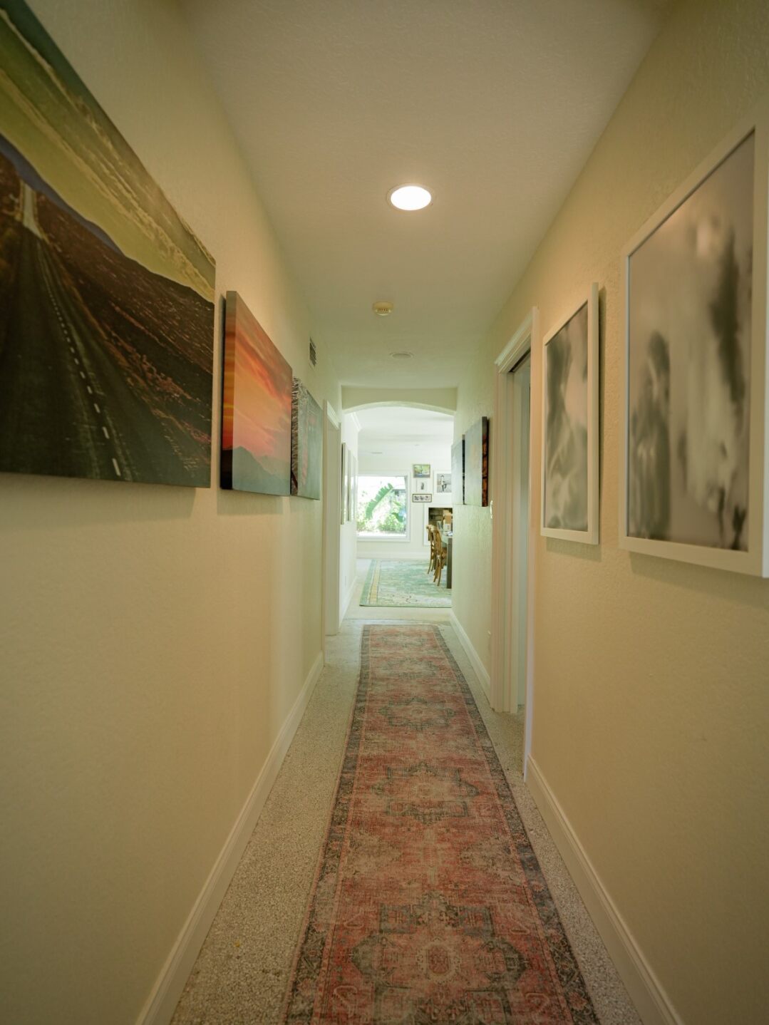 This thoughtful renovation of a historic Tampa home perfectly balances period charm with modern livability. The project showcases careful restoration work throughout, including preservation and exposure of original architectural elements while updating critical infrastructure and finishes. Standout features include a stunning arched brick alcove nook that was carefully uncovered and restored, revealing the home's original character-rich exposed brick. This architectural gem now serves as a functional coat hook area, blending historical authenticity with everyday practicality. The original fireplace was meticulously restored with its brick interior preserved and enhanced with fresh white trim carpentry work and custom mantel detailing. The home received comprehensive interior updates including fresh neutral paint throughout with careful attention to preserving original plaster walls, new terrazzo-look flooring that honors the home's vintage aesthetic while providing modern durability, upgraded recessed LED lighting with period-appropriate fixtures, and restored hallway arches with professional drywall finishing. All carpeted areas received new high-quality padding and installation, crown molding was restored or replaced to match original profiles, and the entire electrical system was updated to modern code standards while maintaining the home's historic character. Windows received new treatments, doors were refinished, and all trim work was carefully restored or replaced to match the home's original craftsmanship.